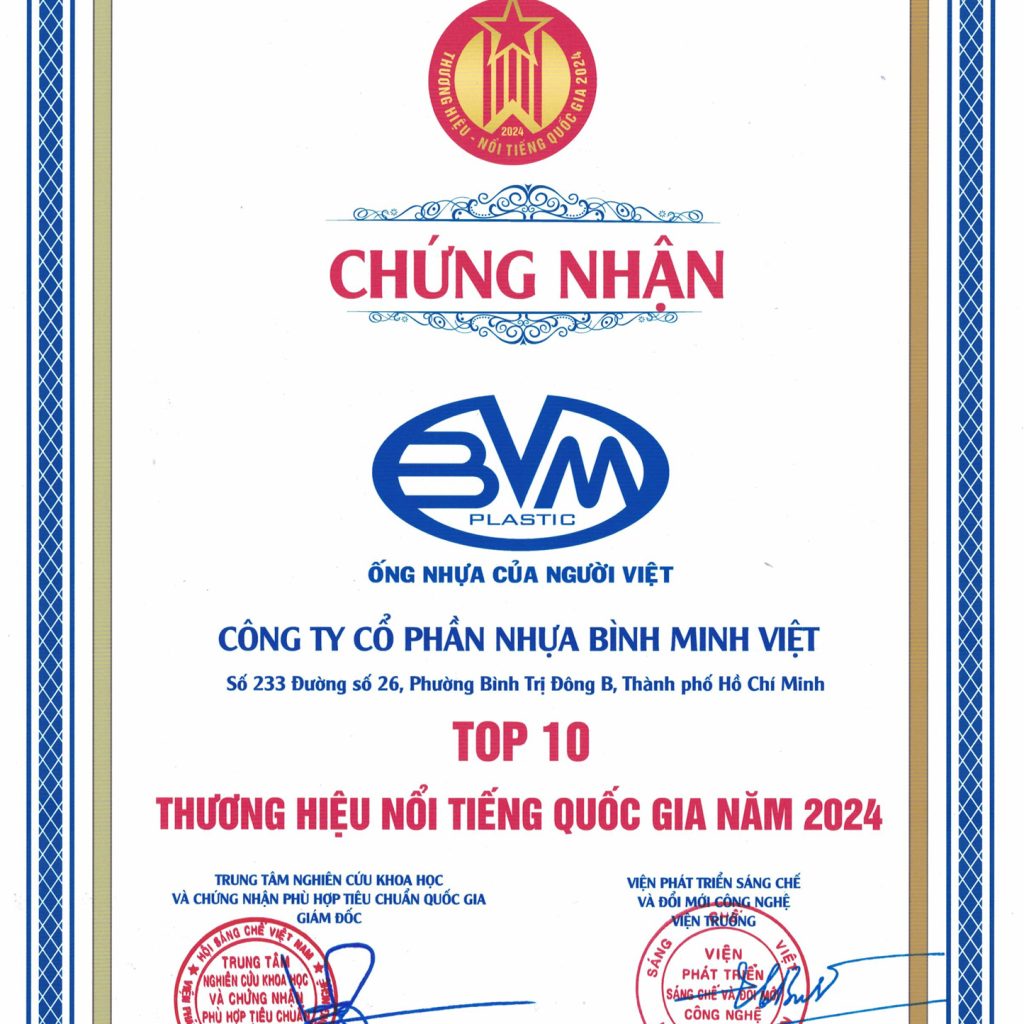 Being ranked in the Top 10 National Famous Brands 2024 is clear evidence of the efforts and strategic vision of Binh Minh Viet Plastic Joint Stock Company. This is not only a well-deserved recognition but also an affirmation of the credibility and sustainable development of a Vietnamese brand in the plastic industry.